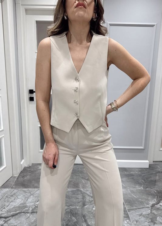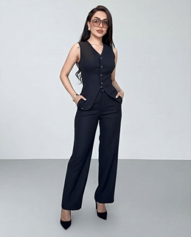 طقم كاجوال قطعتين(فيست + بنطلون) رسمي صيفي بتصميم مميز S57