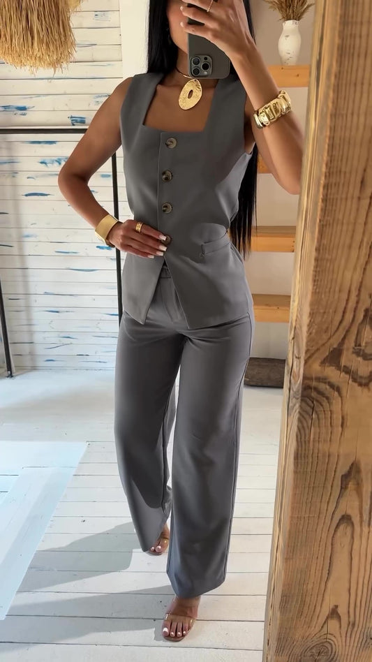 طقم رسمي قطعتين بتصميم كلاسيكي مميز بأزرار أنيقة S66