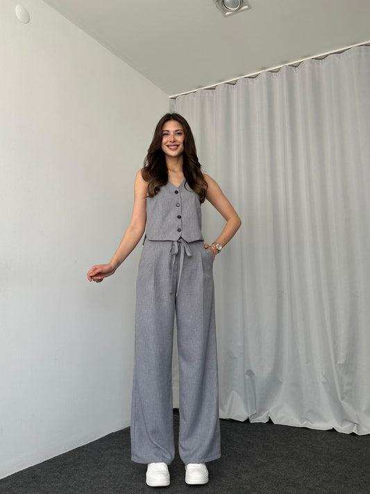 فيست ستاتي تركي أنيق 3 قطع (بلوزة + فيست + بنطلون) V1