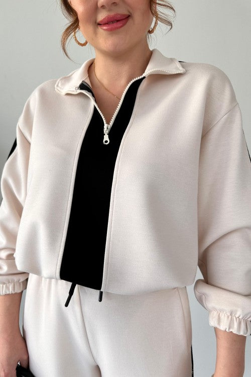 This women's two-piece tracksuit is made from 100% pure cotton and includes a hoodie and pants. The adjustable and extremely comfortable hoodie features a relaxed fit for casual wear and everyday use. The matching tracksuit pants are equally comfortable and come with an elastic waistband to ensure a perfect fit. This tracksuit is the ideal choice for cooler days and casual occasions. Thanks to its soft and warm cotton fabric, this trendy outfit will quickly become your favorite. With its modern design and stylish look, this women's tracksuit will be an indispensable addition to your wardrobe.