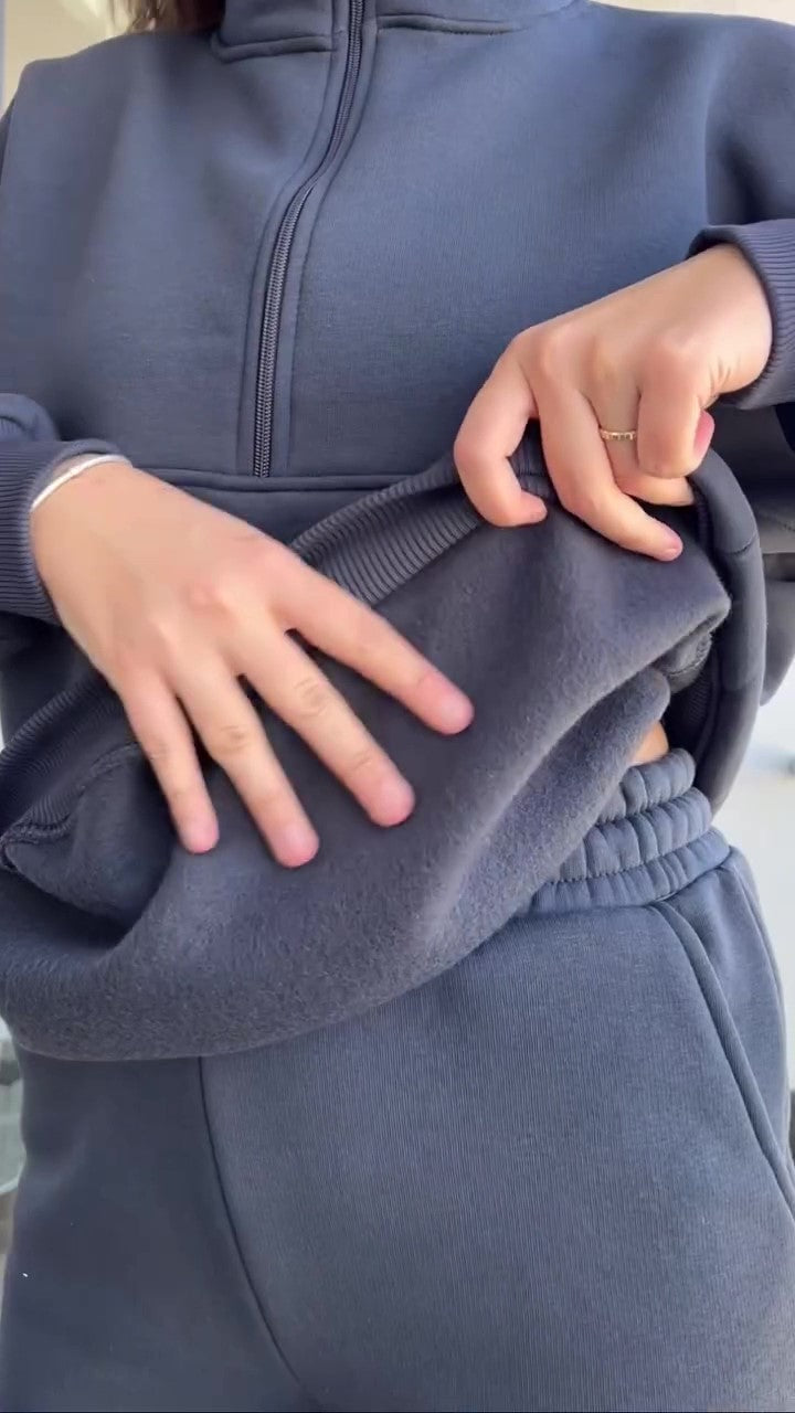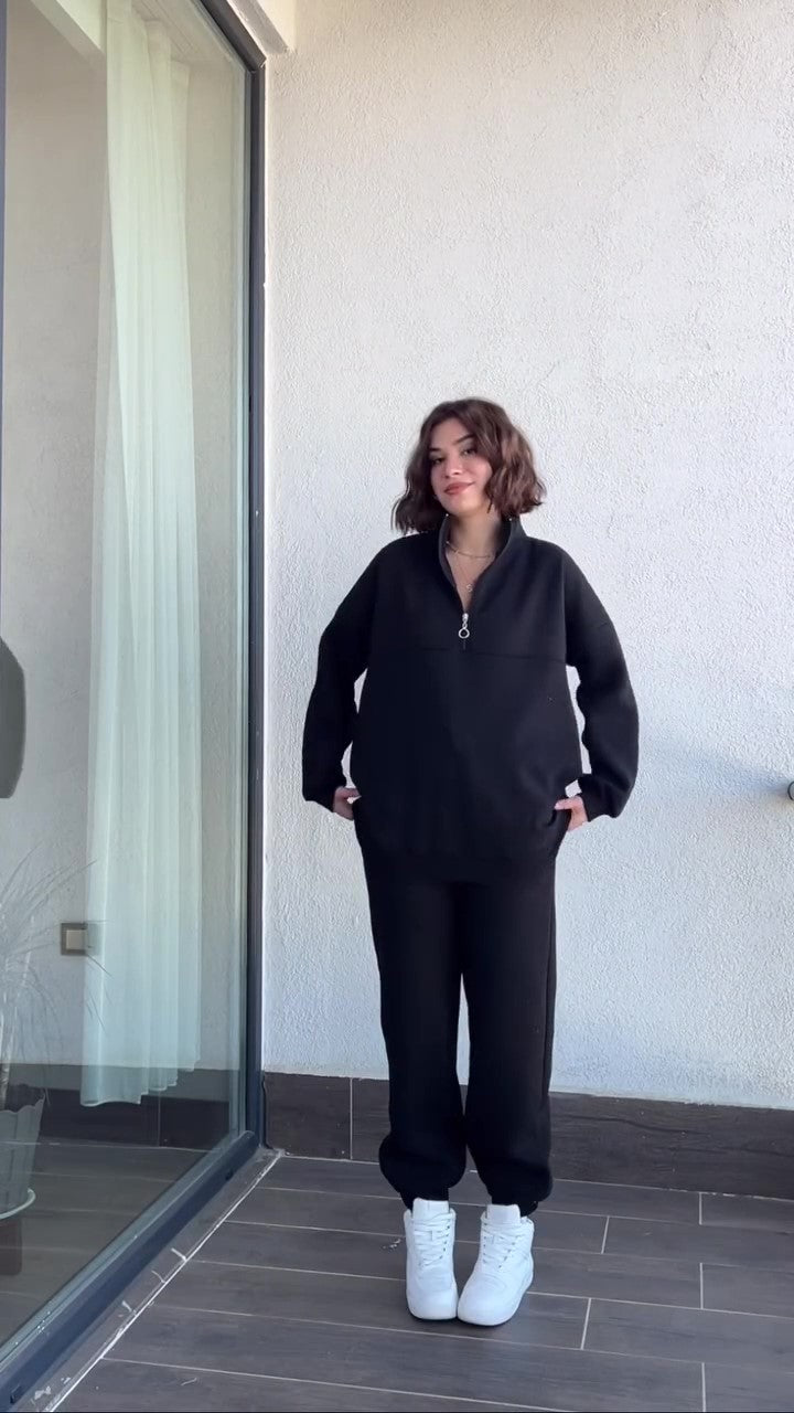 This women's two-piece tracksuit is made from 100% pure cotton and includes a hoodie and pants. The adjustable and extremely comfortable hoodie features a relaxed fit for casual wear and everyday use. The matching tracksuit pants are equally comfortable and come with an elastic waistband to ensure a perfect fit. This tracksuit is ideal for cooler days and casual occasions. Thanks to its soft and warm cotton fabric, this trendy outfit will quickly become your favorite. With its modern design and stylish look, this women's tracksuit will be a perfect addition to your wardrobe.