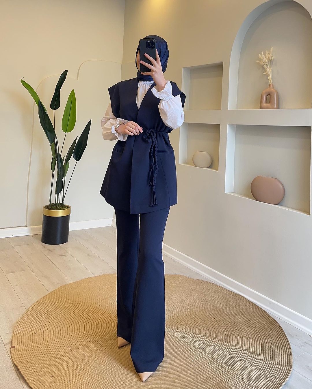 فيست ستاتي تركي أنيق 3 قطع (بلوزة + فيست + بنطلون) V1