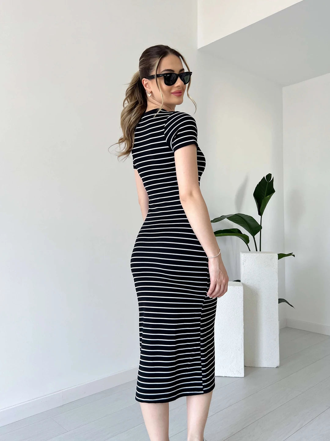 فستان قطني خفيف ومريح يناسب الإستخدام خلال فصل الصيف، مصمم بأنماط مخططة تضفي لمسة أنيقة وعصرية على إطلالتك.